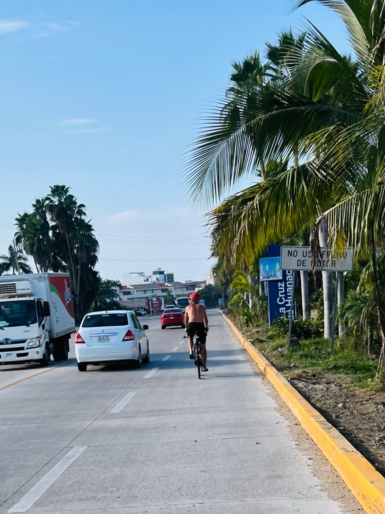 We did find the bike trail to Nuevo Vallarta and it is lovely. Dead flat and follows the beach from the Royal Decameron Resort in Bucerias to the Marina in Puerto Vallarta. We also found a beach access where the fancy hotels are that has an OUTDOOR SHOWER for public use. Never have I ever seen such a thing in Mexico. It is glorious, you can get sandy/salty and shower off before getting back on the bike to cycle home. Round trip it’s about 20km which a perfect distance in 30 degree heat and 95% humidity.