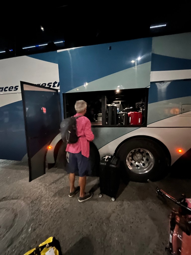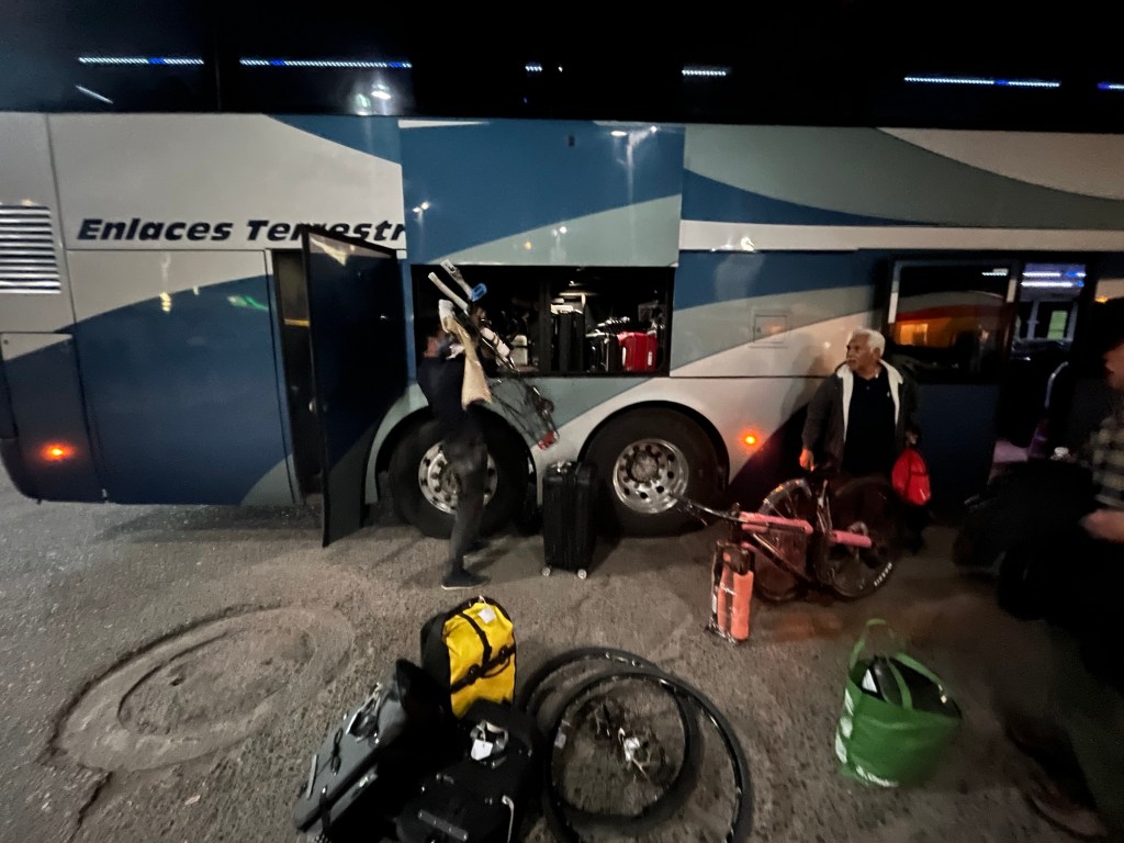 The bus to the coast was 12 hours and largely uneventful. Our bus driver was super cranky and we were told we couldn’t bring Nicks pannier on the bus and it had to go in the hold. No real reason from what I can tell. So we got settled and decided to lie and tell him that I have medication in the bag. So I got off the bus and told him a bullshit story about my health and tada I got the bag. We played some scrabble, went to sleep and woke up gloriously warm on the coast. Away with our sweaters and scarves! Jammed to the bottom of the bags!