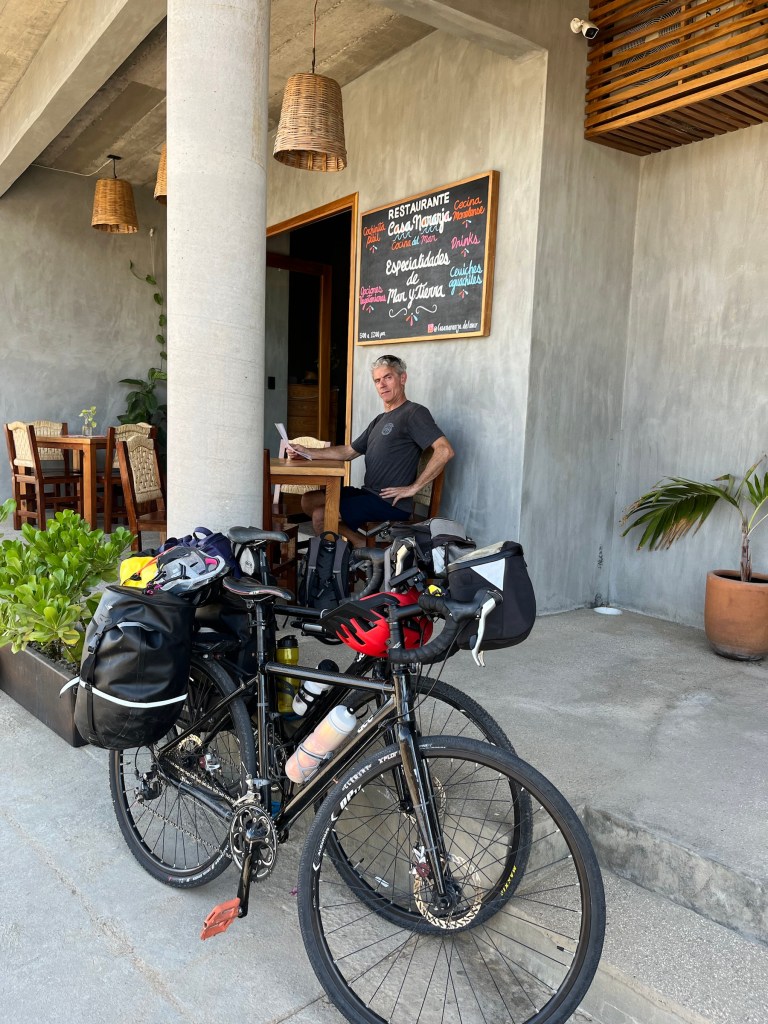 And it was HOT. So wonderful. We would ride in the morning before it hit 30 degrees and then I would go to work and Nick would go do his thing. We ate out a few times but mainly cooked at the hotel. One place we ate at was Persia in La Punta. So good! If you like Persian food and are in La Punta, eat there. The Zicatela market at the top of the hill is also very good. About a dozen restaurants to choose from and the views are amazing.