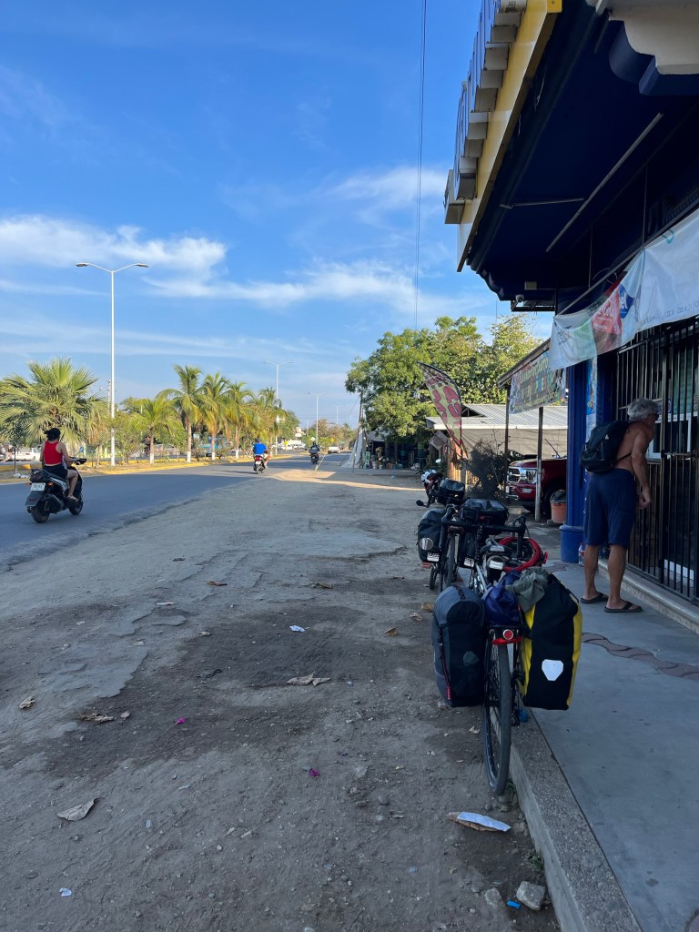 Later that evening we went to the local tienda to watch the world go by. We bought a couple beer and sat on the curb and before we knew it we were surrounded by the local dogs who all came to visit. It’s amazing how friendly most dogs are down here these days, I always have my guard up after years of being chased by them but so far I’ve only been chased twice on my bike.