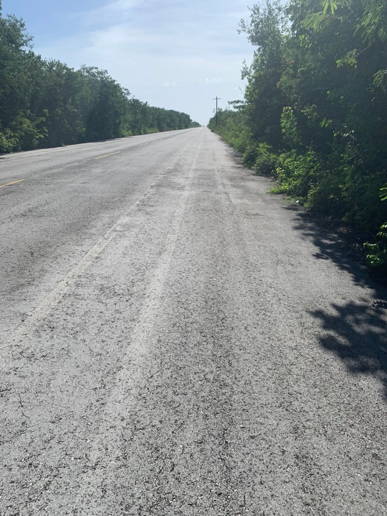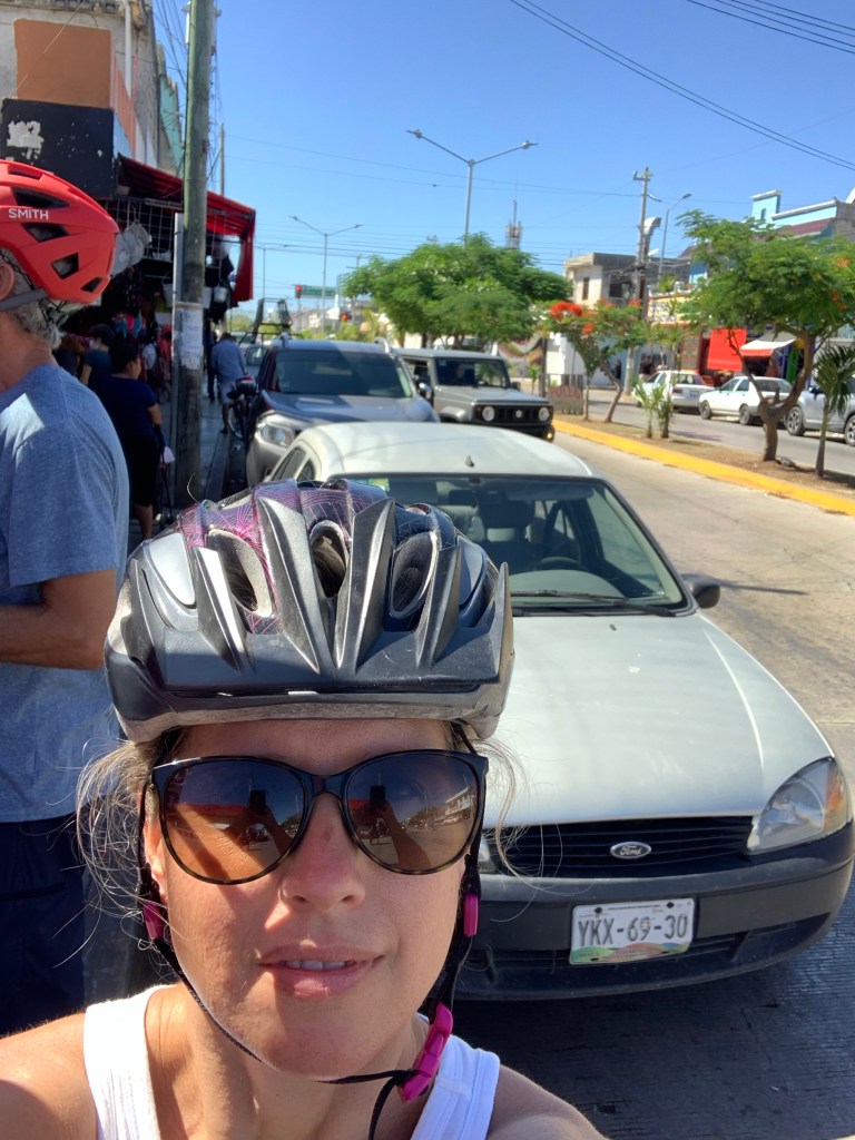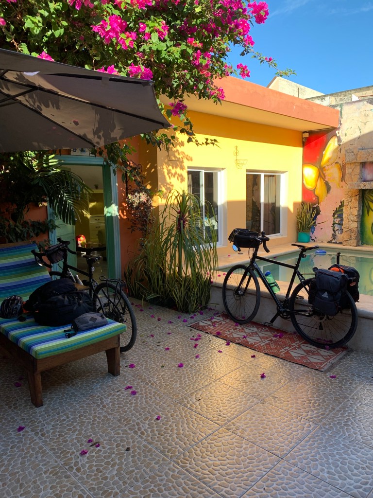 Not many people is my guess and let me tell you why. It’s a long, treeless highway with a smattering of pueblas along the way and not much else. There is no where discreet to pee along the way (sorry to the old man who passed by at the wrong moment) and it’s very, very hot by 9am. Nevertheless, we pedalled on and while it wasn’t a terribly interesting ride it was nice to be on the bikes. I also take back my comments about how dogs in Mexico seem to be treated better. It’s only true in the city; rural dogs do not have it good. I suggested to Nick that we carry kibbles with us to feed the dogs along the way. You can imagine how that conversation went. Poor Nick, he is trying to make our pannier’s lighter and I’m buying dog food.