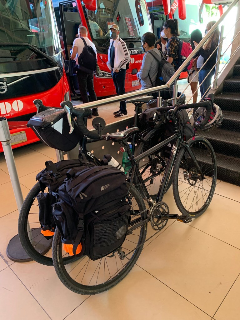 We had to take a second class bus. I know, terrible right? But we had no other option. So I bought the 2 tickets and when the bus showed up we had to dismantle our bikes to get them to fit in the hold while everyone just stood and watched. Then, we get on the bus and the driver tells us it’s another 100 pesos for the bikes. No receipt. Bullshit. It went straight in his pocket and Nick and I fumed the whole way. The whole 3 hour bus ride. The full 140km, stopping in every town. Plus, the driver stopped so he could go pee right outside my window. I felt like I deserved that one though; for my earlier indiscretion. At any rate, I fantasized about arguing with driver once we got to Merida but by then I was so thankful to get off the damn bus I probably would have paid another 100 pesos.