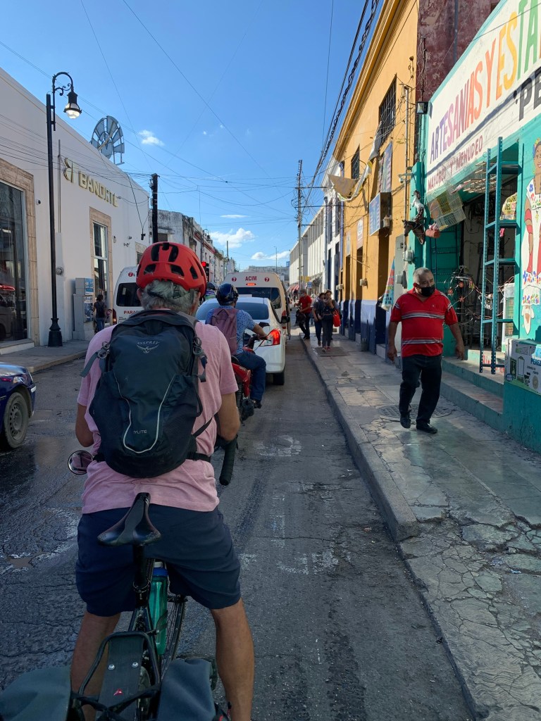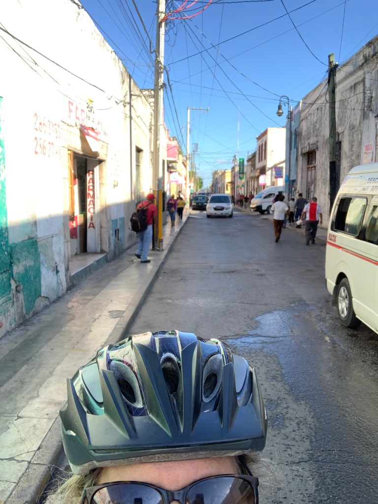 We arrived in Merida about 3:30pm and then began the adventure of cycling in a very congested city that is all one way, narrow, pot holed streets and drivers who do not give way to cyclists. It was actually quite exhilarating and fun once we realized we had to be aggressive if we wanted to get to our hotel in one piece.