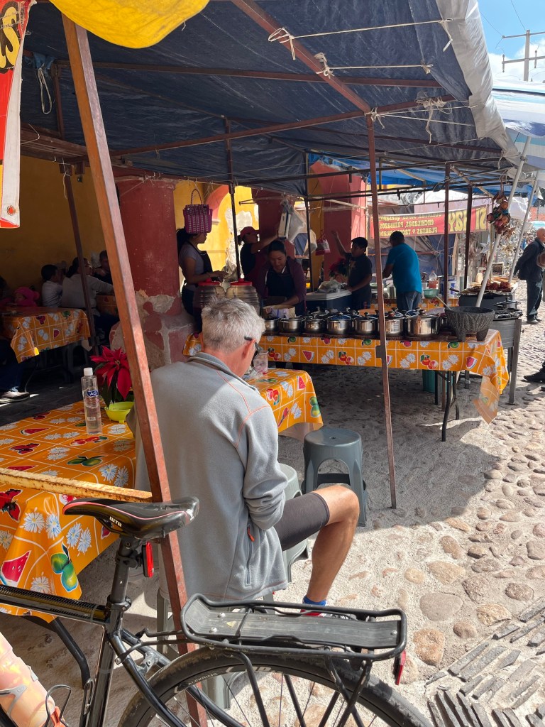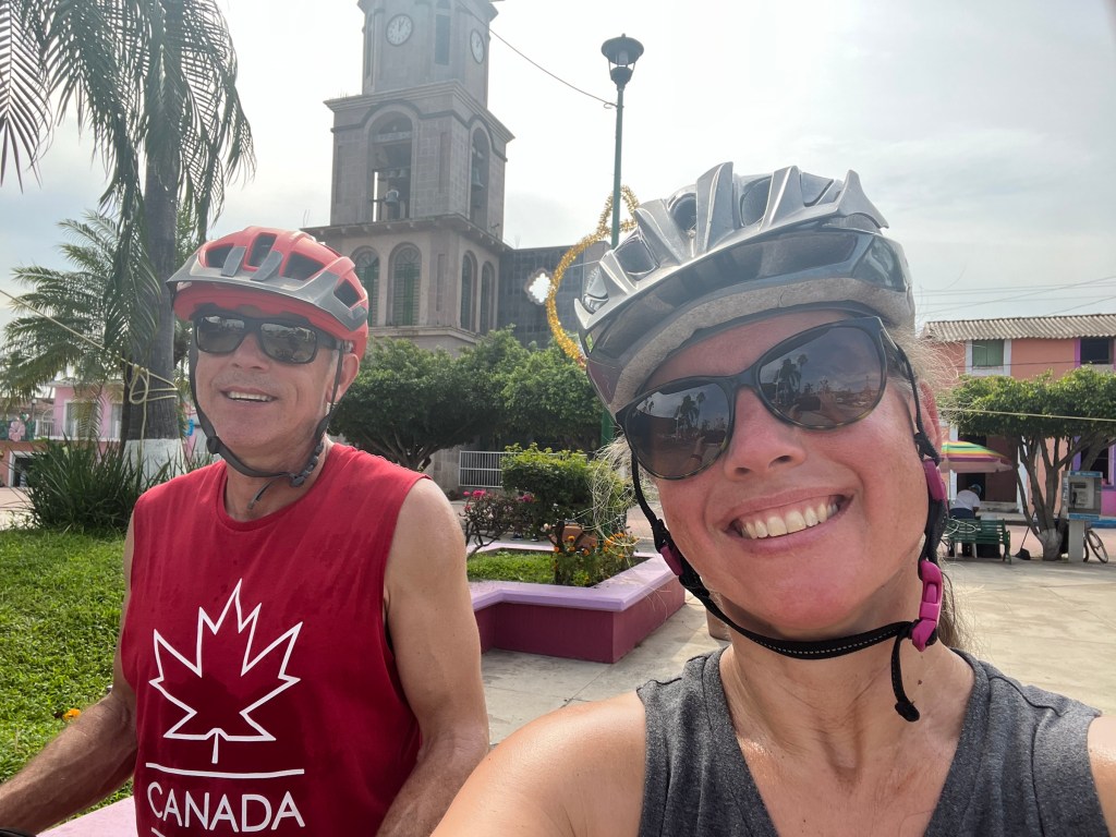 We did do one morning ride last week, just a quick zip out to Valle de Banderas and back We stopped in town at a streetside juice stand and got completely taken for being gringos. We should know better by now. We roll up, order a large orange juice and do not ask the price. Duh. Of course, she charged us 100 pesos and we had to pay it. I guess we could have argued it but seriously? It was our own fault and lesson learned. Plus I won’t stop there again when we ride out there this week.