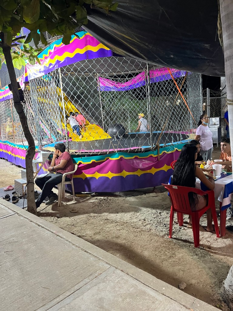 The carnival is in town. Sigh. These are travelling fairs that set up in the Barrios for a week or so and it is very disruptive. They set up on the street (like blocking peoples houses) around the plaza mainly and festivities start at around 7pm and go until 2am. There is live music and the sounds from the rides, kids screaming, dogs barking, etc. It is chaos. Plus the carnies sleep in their vehicles beside the rides and garbage is everywhere. The locals love it though and the kids are having so much fun on the rides. They have a mini roller coaster, merry go round, this spinny thing that goes very fast around a track and finally a pirate ship that swings back and forth like a pendulum. These rides have been banned in the North decades ago I am sure but you better believe that both my kids enjoyed all of these rides in Mexico when they were little.
