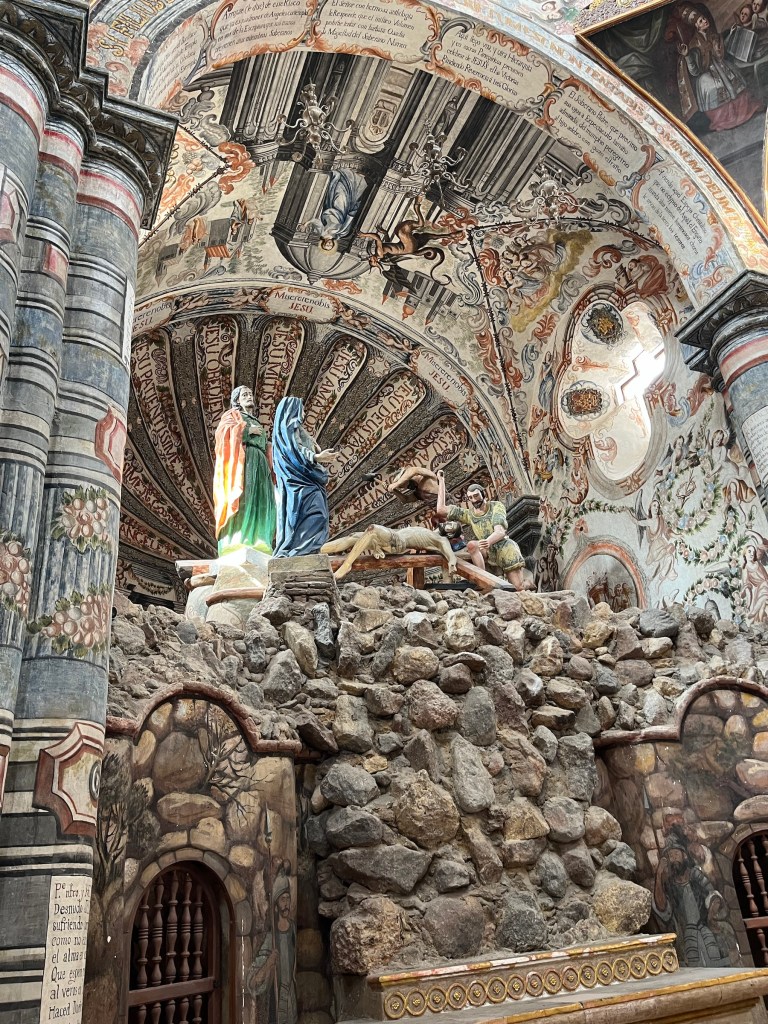 We have been out for a couple rides into the countryside; one out towards Querétaro which we cut short due to rain and the traffic was very heavy and it didn’t feel particularly safe. The other ride was great, we did about 40km on a backroad out to a small town called Atotonilco which is known as a pilgrimage town. There is a sanctuary built in the 1740’s and it is known as the Sistine Chapel of Mexico. It’s is spectacular, every inch of the place is painted in a Mexican baroque style of religious scenes. During Holy Week there are between 15,000 to 20,000 people that arrive to make the pilgrimage from the Sanctuary to the church in SMA.