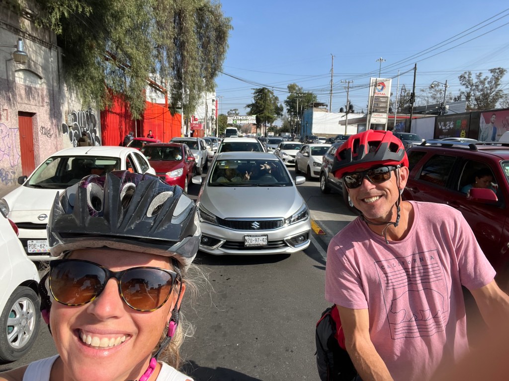 We arrived here on December 17th by catching the bus from SMA to the South Bus Terminal. It was about a 3 hour ride and they took our bikes with no problem. The bus terminal in CDMX is unlike one I have seen anywhere. It is enormous and looks like an airport; restaurants and bars everywhere. Once we maneuvered outside it was chaos; cars, motorcycles and people filling the sidewalks and streets. We managed to get passed the throngs of people only to be hit with more people camping on all the side streets, spilling onto the road and cars honking constantly. We figured out that the campers are migrants making their way to the US border. It was terribly sad to see families, young men, and elderly people in such a dire situation. We had discussed this with a friend in SMA who said the caravans used to come through there and they volunteered to meet the migrants weekly to feed them, give supplies and try to convince them to stay in Mexico as their chances of reaching the US safely decreases as they move north. We pushed on and began our first cycle into the city.