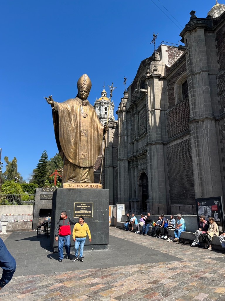 On Sundays, a major road in the city called Reforma is closed to traffic and it is opened to people to use. It’s amazing. It runs from Chapultepec Park all the way to the Basilica de Guadalupe at the other end. Round trip it is about 20km and it passes many monuments in the city. Such a lovely way to take the sights in. The Basilica dates back to 1666 and the history is that this is the spot in 1541 when the Virgin of Guadalupe (Mary) first appeared and was seen by a peasant named Juan Diego. It is among the most visited Catholic pilgrimage sites in the world and is now a National Park. It was something to see and outside the gates every hawker in the area is selling kitschy Virgin Mary trinkets; from statues to baby onesies with her image bejeweled on it.